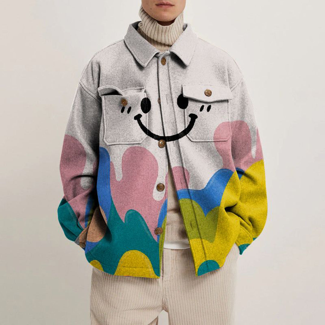 Geef je stijl een boost met onze gewaagde en levendige essentials voor koud weer: de EMANUELE Trendy bedrukte jas voor heren!