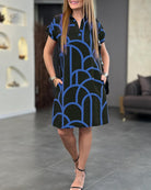 Comfortabele korte mouwen: Korte mouwen bieden comfort en bewegingsvrijheid, terwijl ze je koel houden bij warm weer. Ze voegen een ontspannen en stijlvolle look toe aan de jurk.