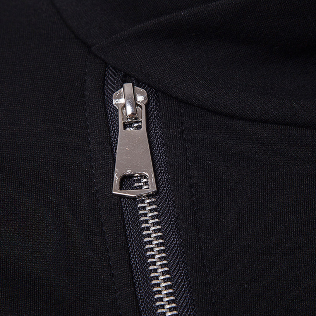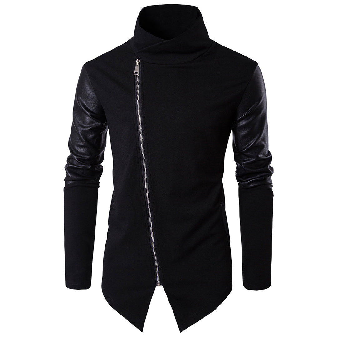 Een asymmetrische ritssluiting en patchwork details geven deze knappe jas een futuristische uitstraling. Gemaakt van een gezellige mix met kunstlederen details op de mouwen, met een slank silhouet en een effen ontwerp voor maximale veelzijdigheid op uw off-duty dagen.