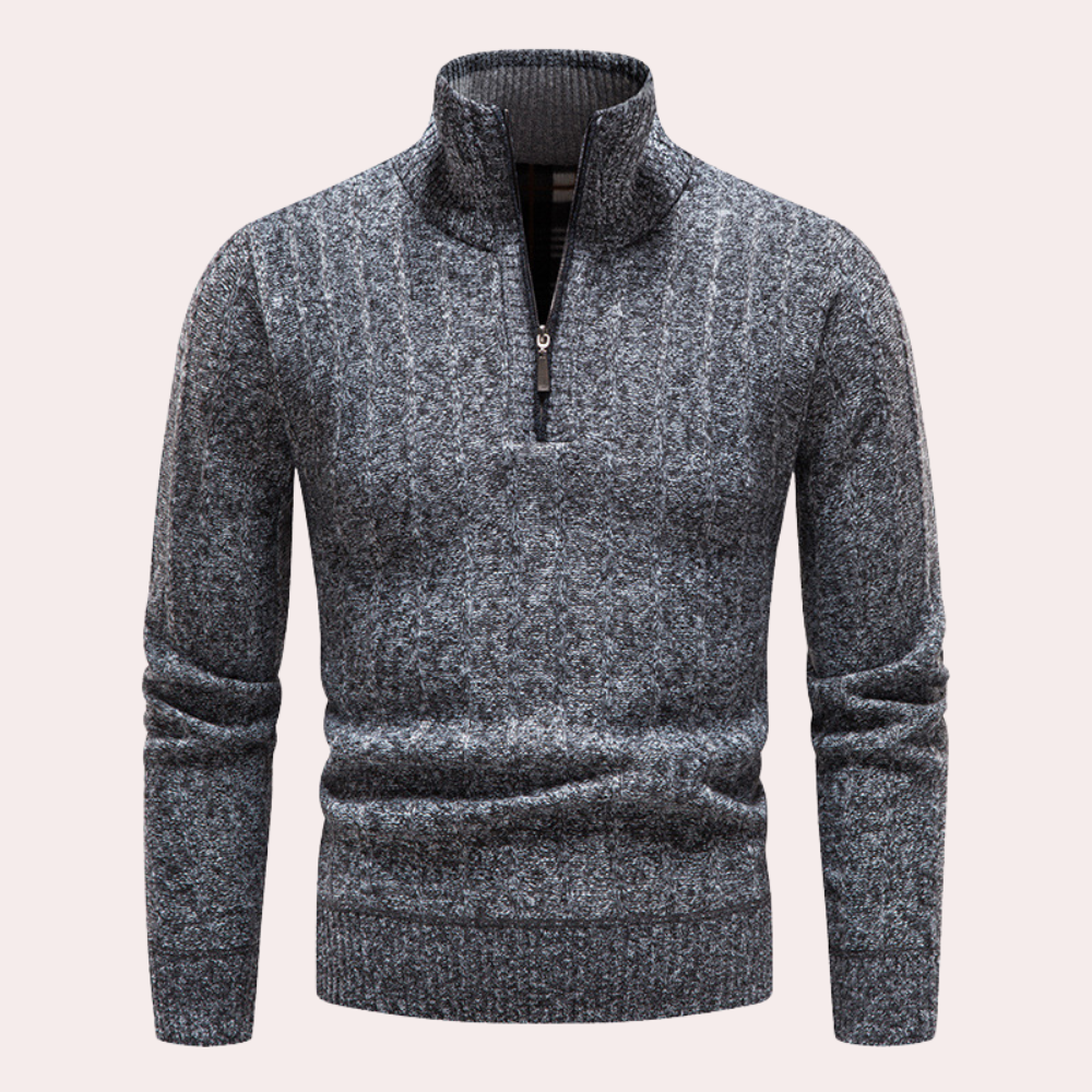 Hier heb je onze Thayer Warme heren trui met col en rits, Deze trui is zowel comfortabel als stijlvol voor het uitgaan, maar ook voor thuis op de bank. Deze trui is gemaakt van een comfortabele stof die geschikt is voor de lente, herfst en winter.
