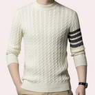 Met zijn elegante streeppatroon is de trui veelzijdig en past hij bij verschillende outfits. Het is een geweldige manier om een modieus tintje toe te voegen zonder te overdreven te zijn. Deze trui is ideaal voor mannen die de voorkeur geven aan een klassieke, maar moderne stijl.