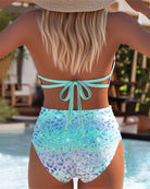 Deze glamoureuze bikini tilt je zomerse stijl moeiteloos naar een hoger niveau. Met een flatterend hoog taillebroekje, een elegante schelpgesp en een fonkelende luipaardprint in pastelkleuren is dit de ultieme combinatie van vrouwelijkheid en luxe.
