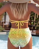 Het haltertopje biedt niet alleen steun, maar ook een verleidelijke, verfijnde look — perfect voor zonnige dagen aan het water of een stijlvolle poolside cocktail.